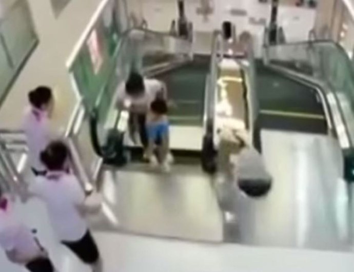 Китаянку затянуло в эскалатор