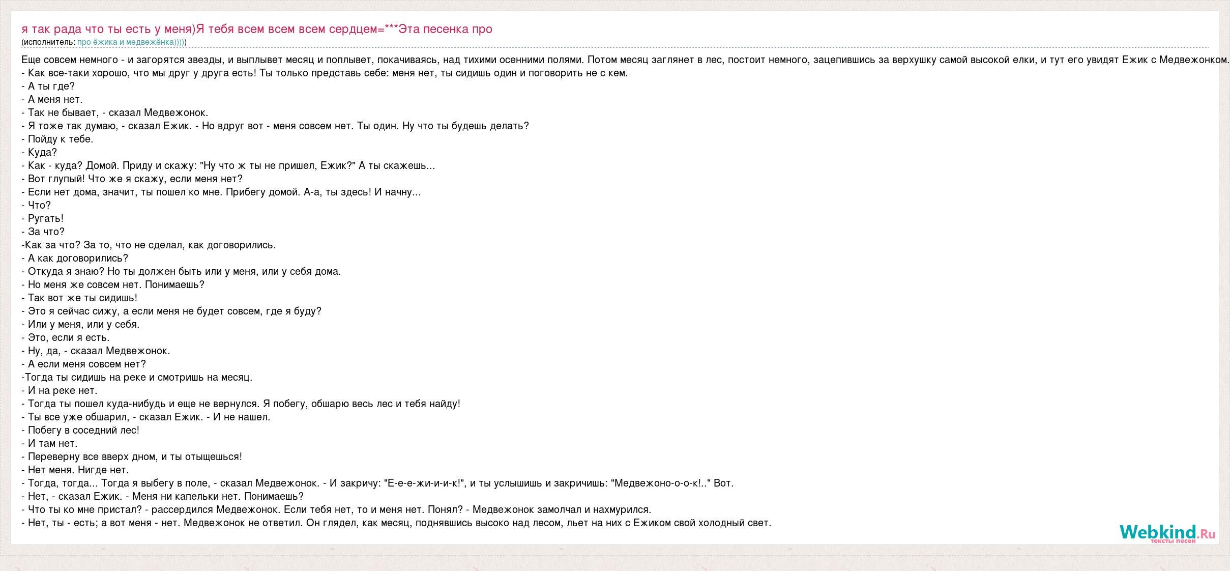 Диалог ежика и медвежонка если тебя нет то и меня нет