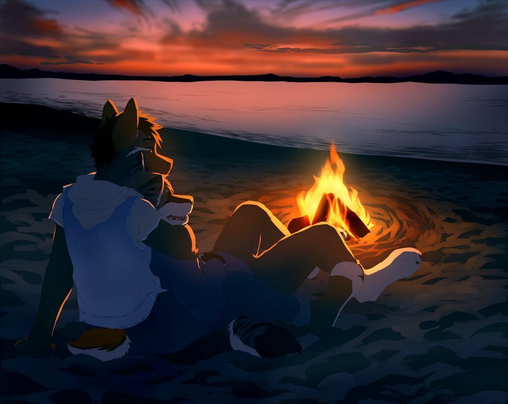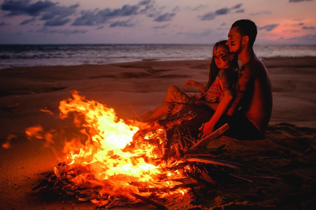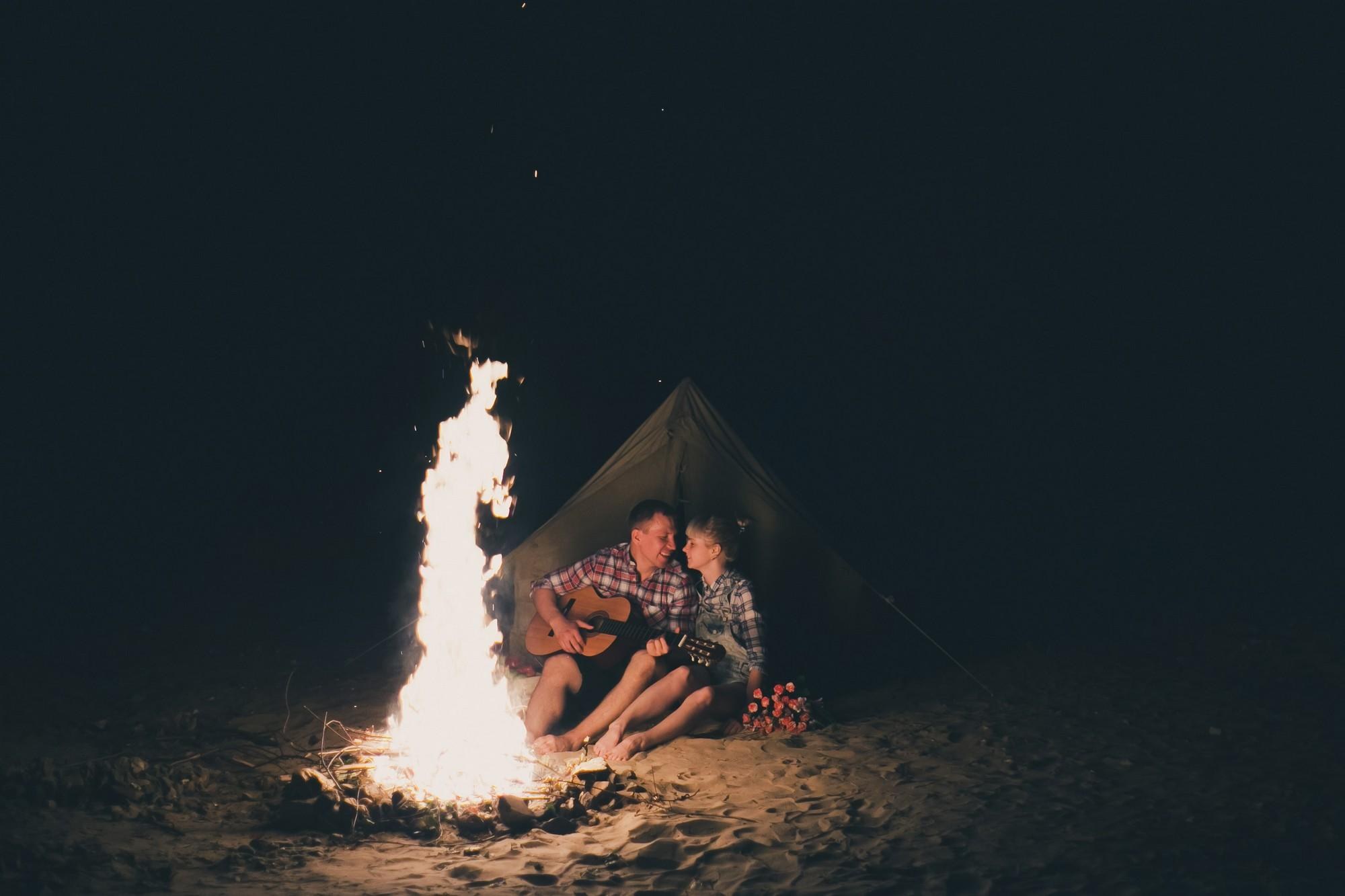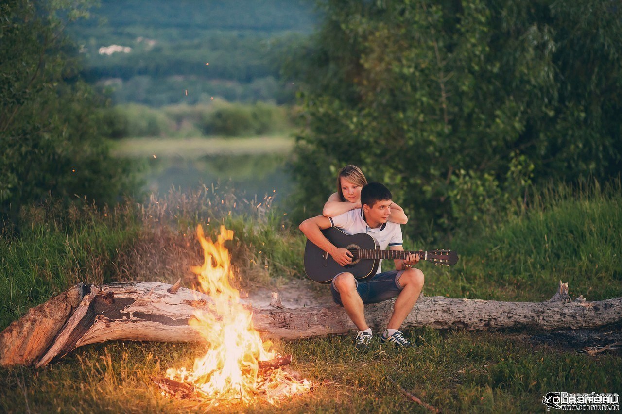 Влюбленные на берегу у костра
