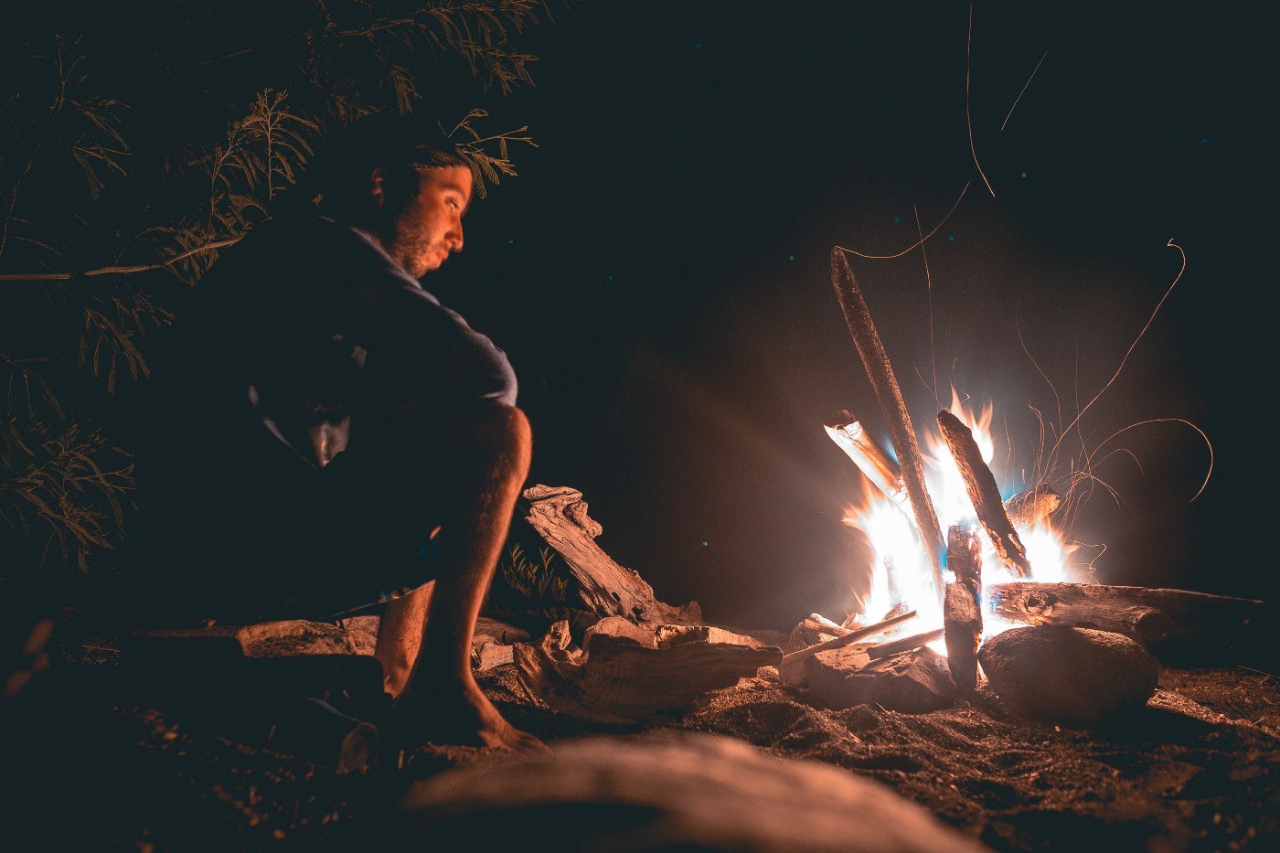 Свет от костра на человеке