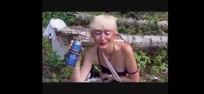 Пьяной бабе бутылку в зад