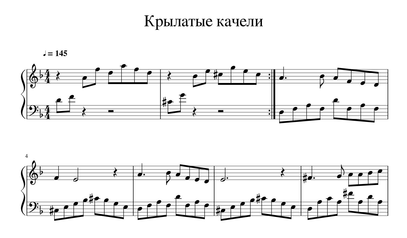 Крылатые качели Ноты для фоно