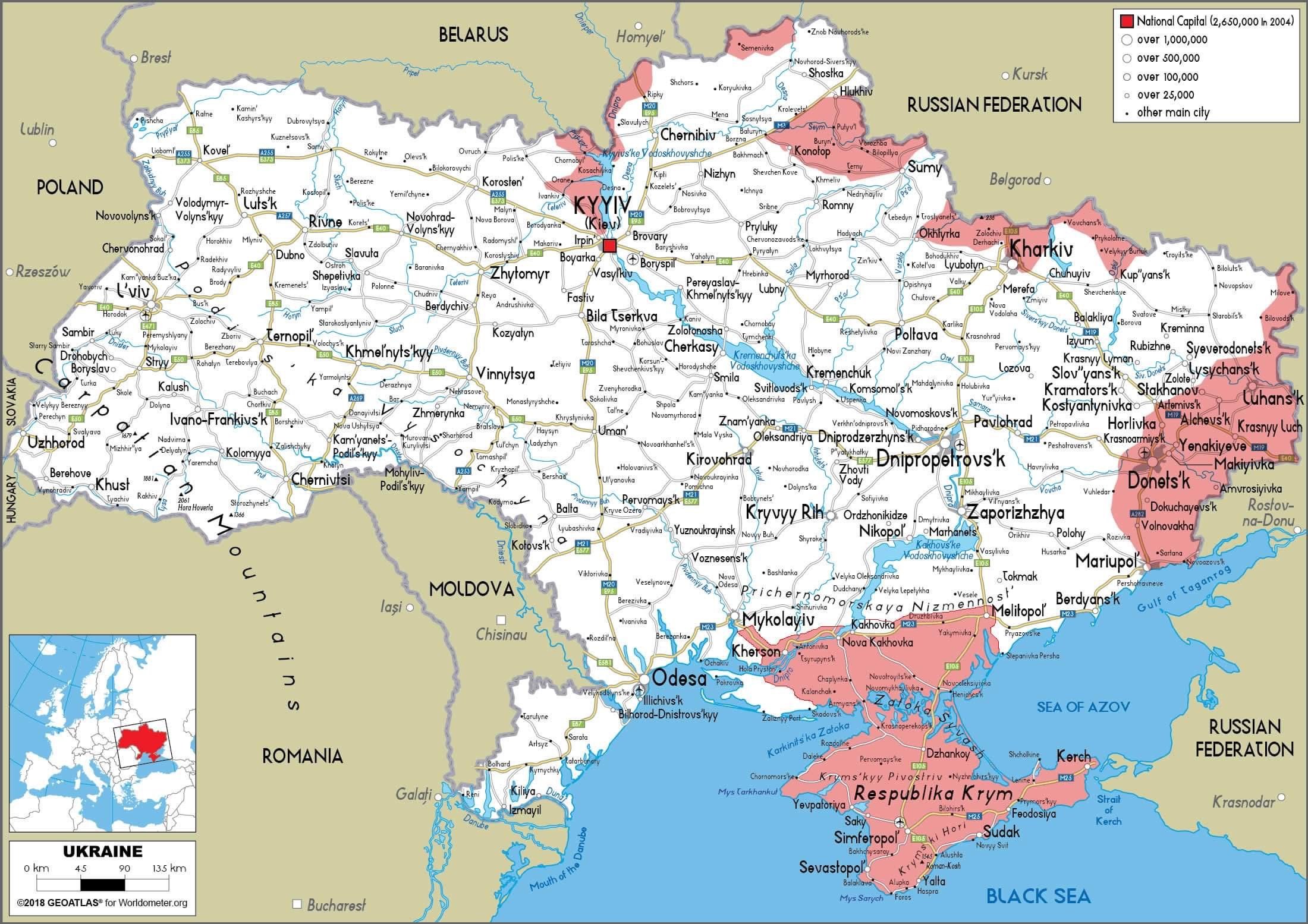 Карта автодорог Украины подробная