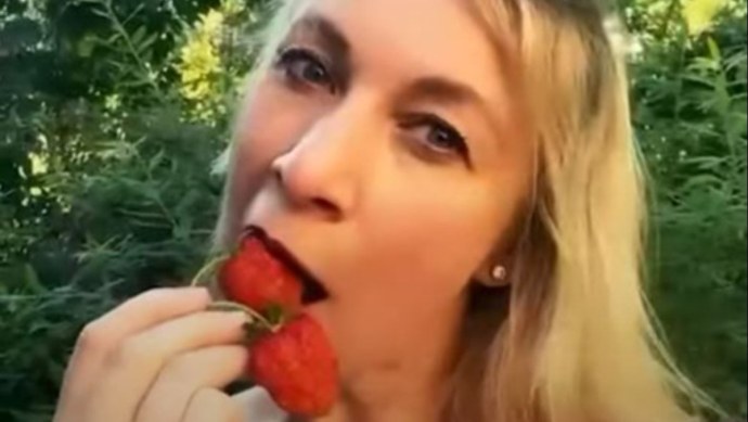 Захарова ест клубнику