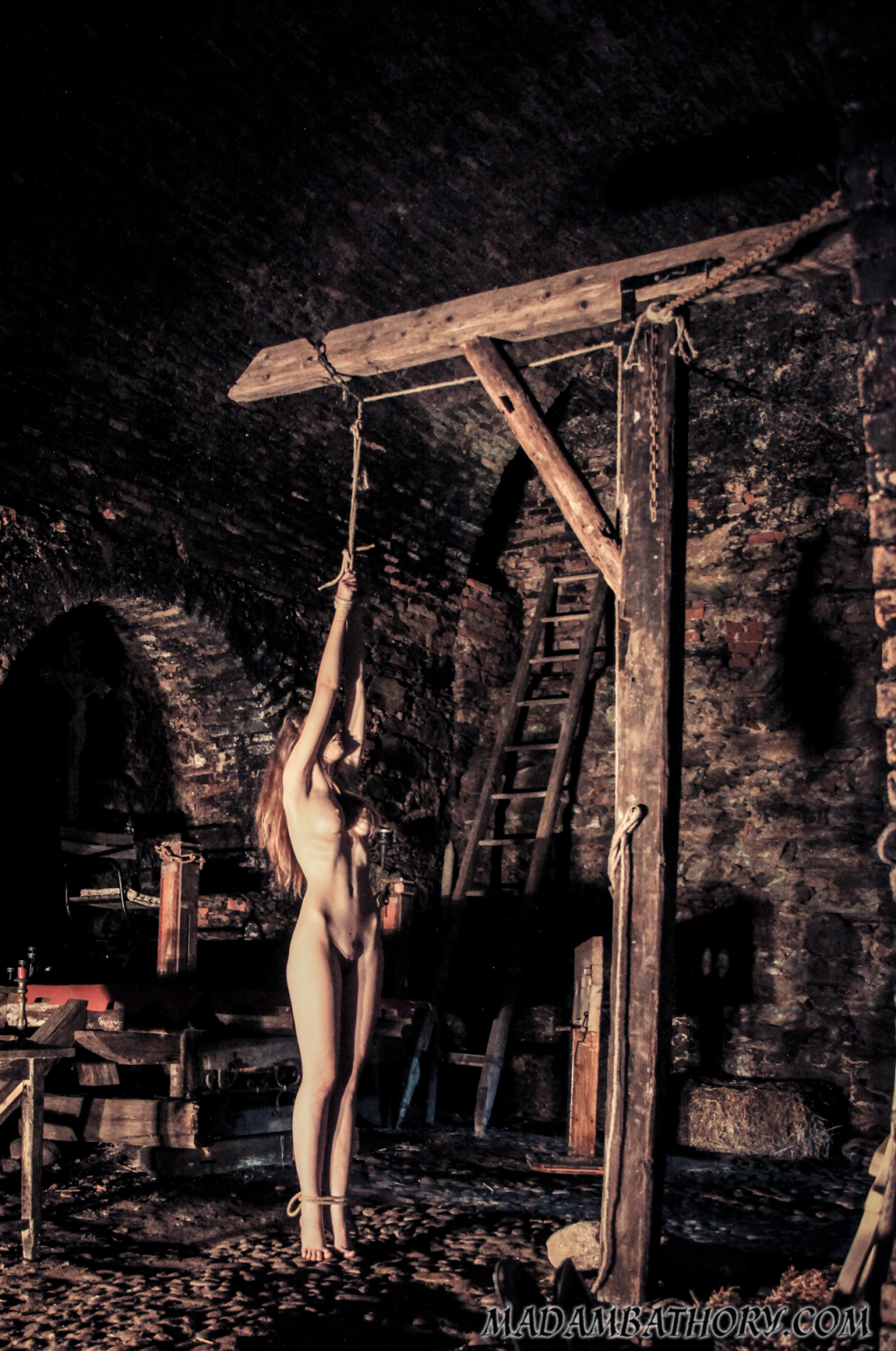 Голая подвешена за руки