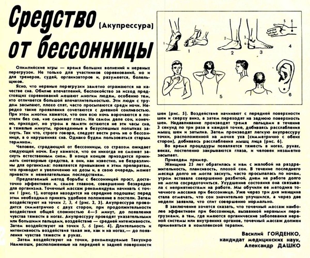 Точечный массаж при бессоннице