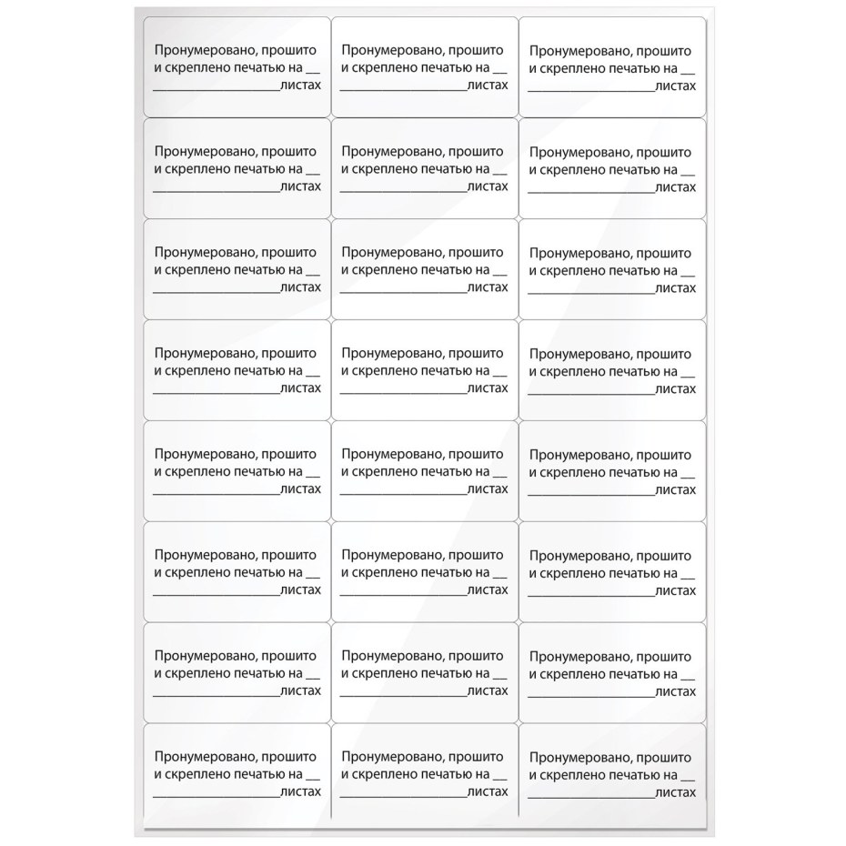 Наклейка прошнуровано пронумеровано
