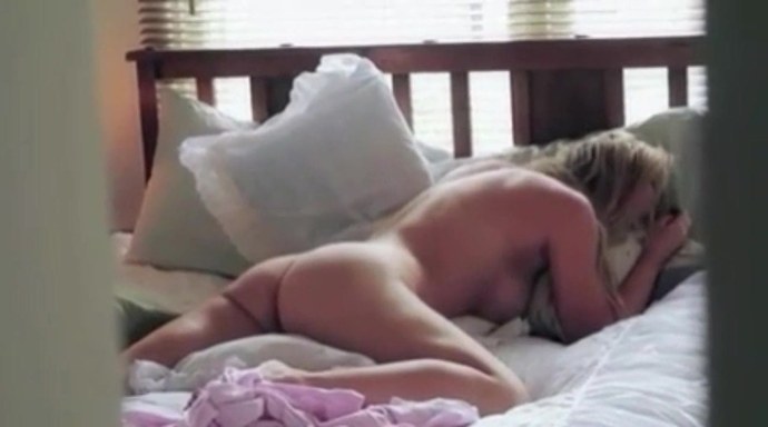 Девушка трется об кровать