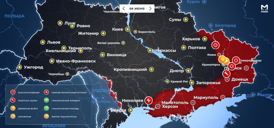 Карта военных столкновений на Украине