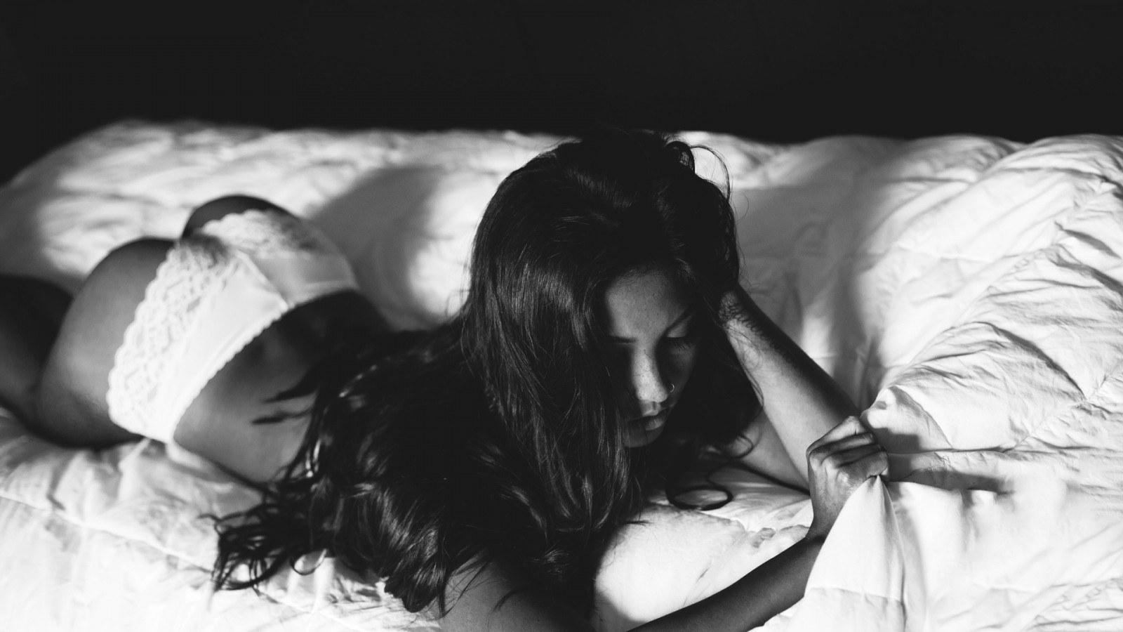 Девушка брюнетка в постели