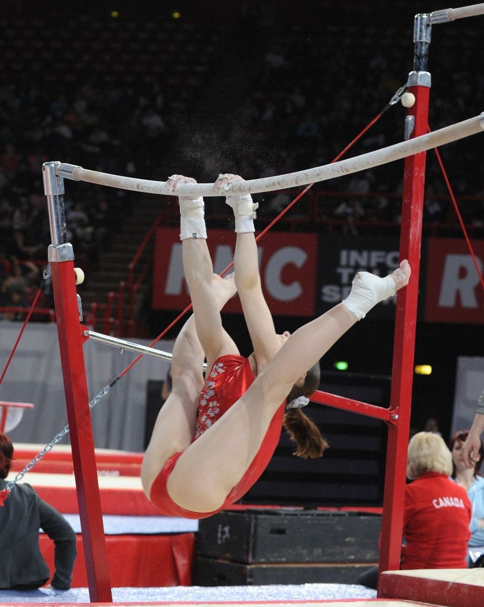 Голые спортсменки на перекладине