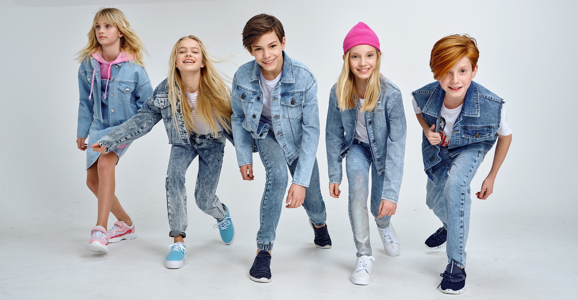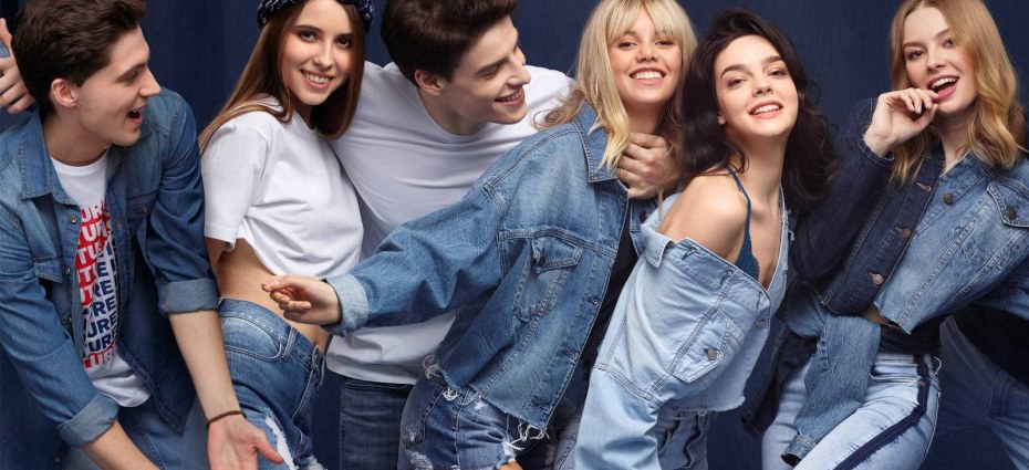 Группа девушек в джинсовой одежде