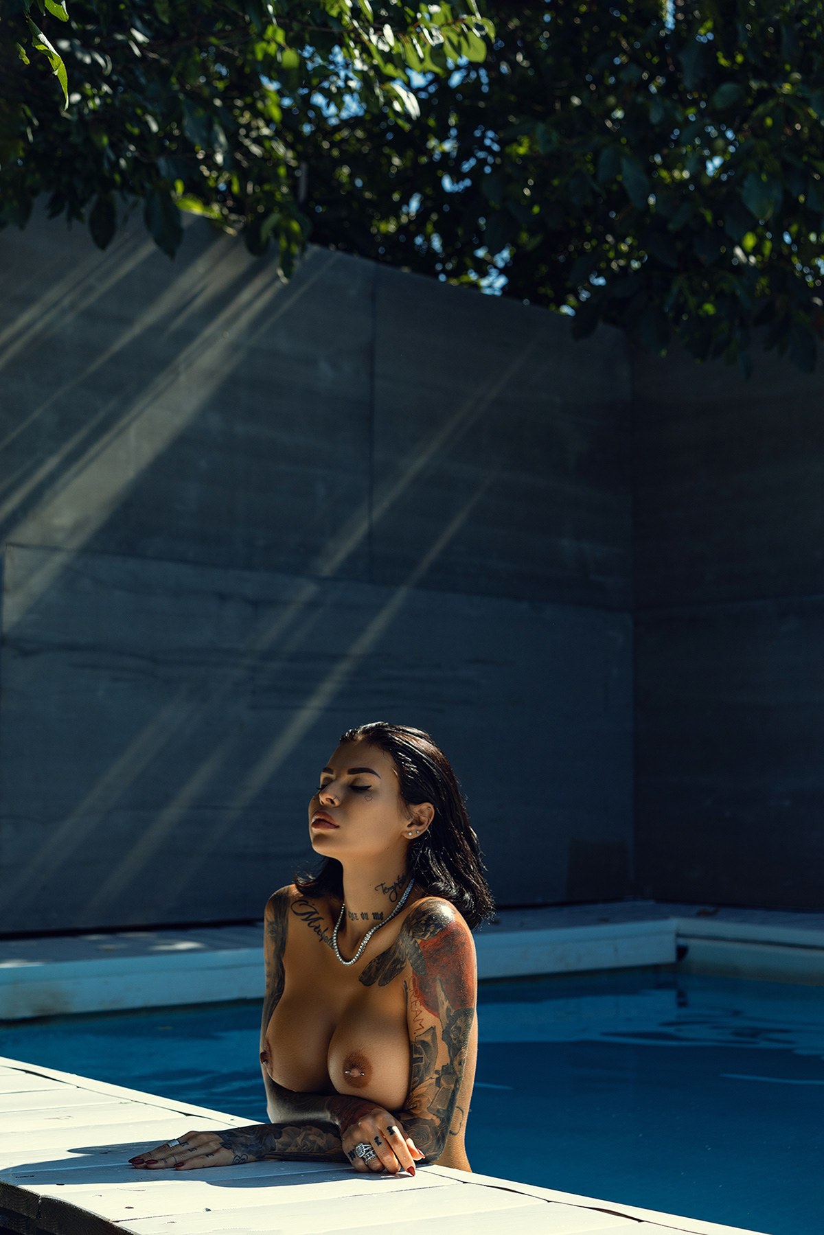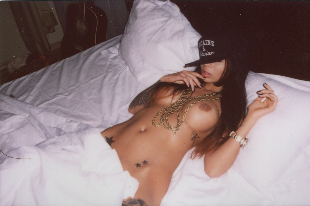 Голая брюнетка с татуировками