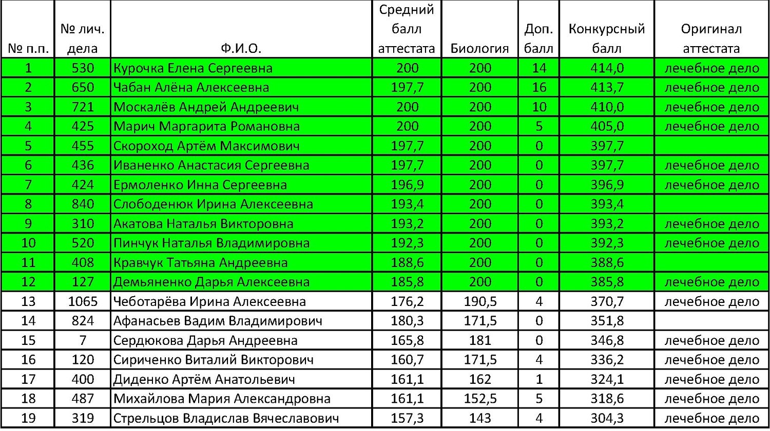 Рейтинговые списки абитуриентов