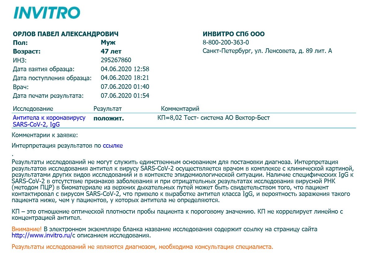 Инвитро коронавирус результат