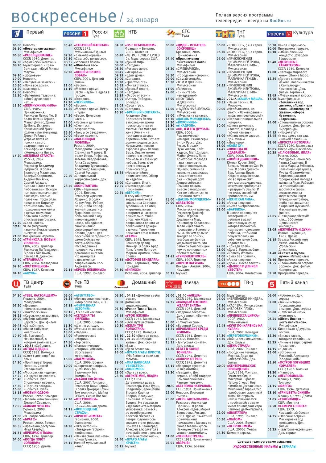 Программа передач на воскресенье