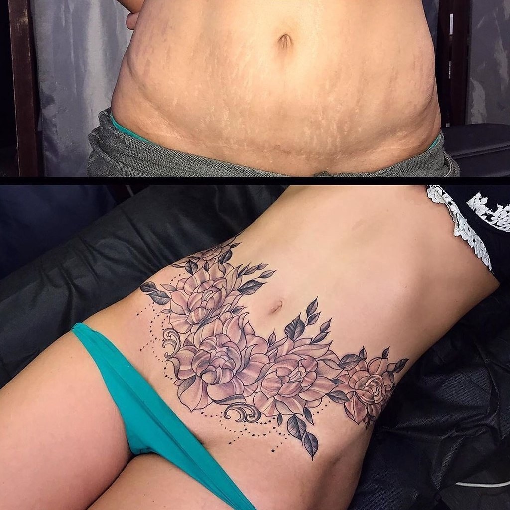 Тату на животе от растяжек