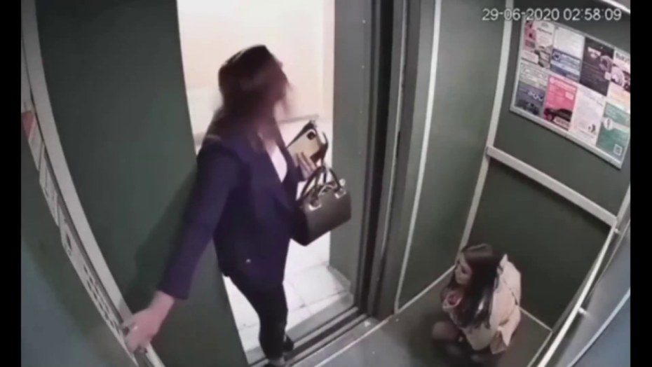 Девушка застряла в дверях лифта