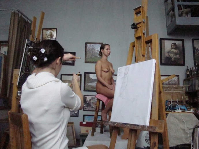 Голые натурщицы в художественных студиях