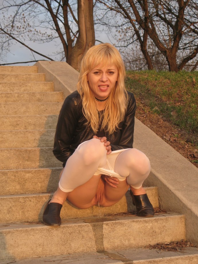 Блондинка ссыт на улице